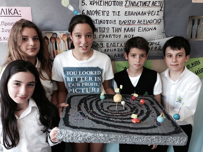 Στο πλαίσιο του μαθήματος της Γεωγραφίας, οι μαθητές, αφού γνώρισαν και μελέτησαν το ηλιακό μας σύστημα, χωρίστηκαν σε ομάδες και προσπάθησαν να το κατασκευάσουν με φαντασία και δημιουργική διάθεση.
