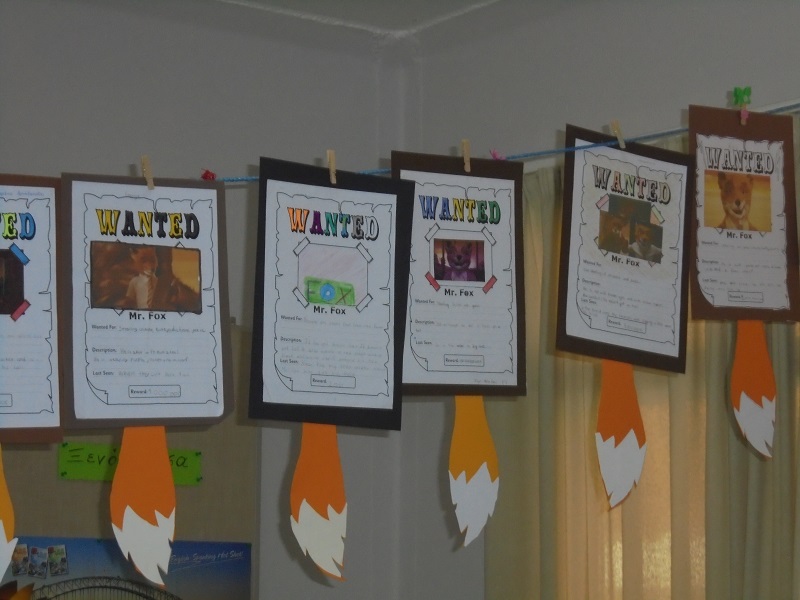 Από τα πρώτα κιόλας κεφάλαια του βιβλίου “Fantastic Mr. Fox” ο κεντρικός ήρωας γίνεται στόχος της οργής των αγροτών οι οποίοι προσπαθούν να προστατεύσουν τις περιουσίες τους. Μετά από πολλές αποτυχημένες προσπάθειες, οι αγρότες καταφέρνουν να τον τραυματίσουν. Οι μαθητές της E' Δημοτικού δραματοποίησαν το συγκεκριμένο γεγονός κατασκευάζοντας posters του επικηρυγμένου Mr. Fox. Προχωρώντας στην ανάλυση του βιβλίου, ωστόσο, οι απόψεις των μαθητών διχάζονται. Είναι σωστό να κλέψει κάποιος για να ταΐσει την οικογένειά του που λιμοκτονεί; Έχουν δικαίωμα οι Farmers να κατέχουν πληθώρα φαγητών και να αδιαφορούν γι’ αυτούς που το έχουν ανάγκη; Οι μαθητές χωρίστηκαν σε ομάδες και προσπάθησαν να βρουν επιχειρήματα υπέρ ή κατά των δύο αντικρουόμενων καταστάσεων. Στο τέλος έφτιαξαν ένα poster όπου αποτύπωσαν τις απόψεις τους.